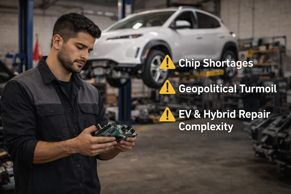 EV sales slowed in late 2025, but hybrid repairs increased sharply. Hybrids and EVs rely on batteries, electric motors, sensors, and high-voltage components. These parts are harder to source, take longer to ship, and add uncertainty to repair timelines.