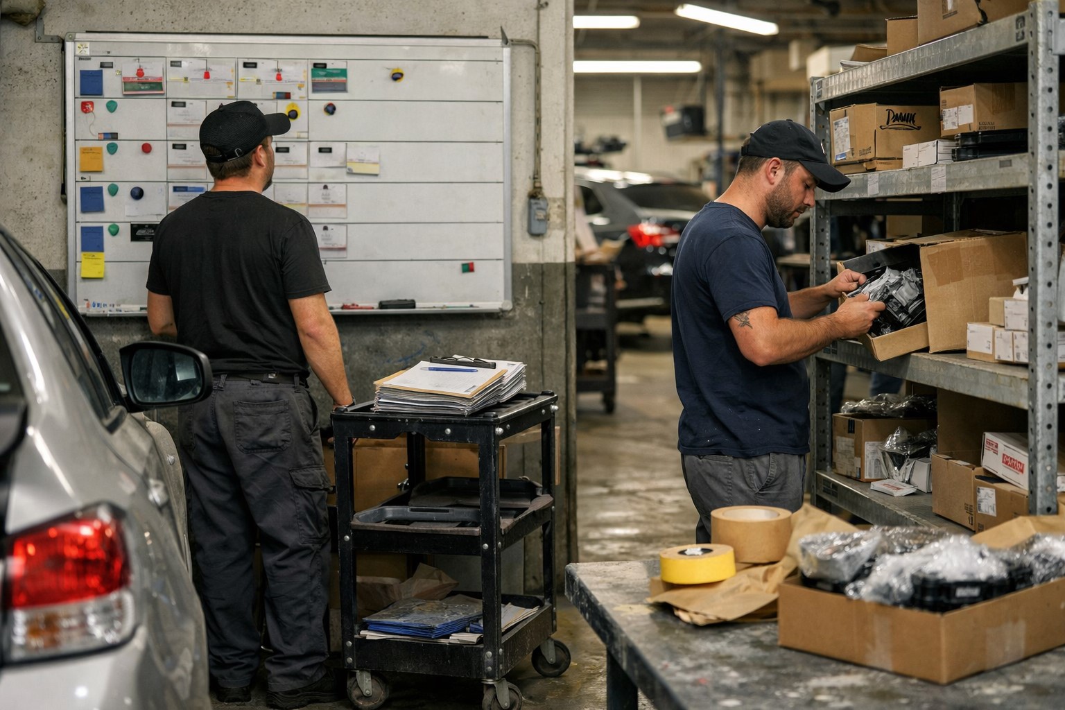 - Parts staging happens the afternoon before, not the morning of. Any part that is not confirmed and physically in the bay or on the parts shelf by the end of the day should be flagged before the next shift begins.